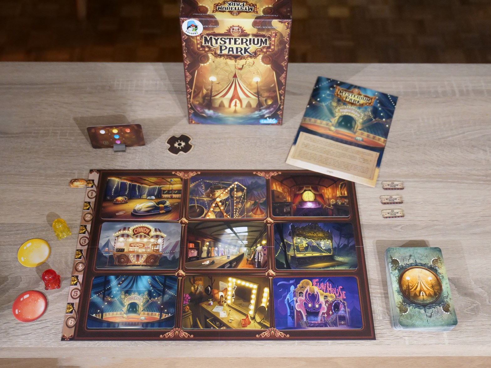 Bienvenue au Parc des Mystères ! Les barbes à papa, son cirque, ses sombres secrets… Dans ce jeu coopératif et asymétrique, le fantôme envoie des visions à l’aide de cartes illustrées. Les médiums tentent de les interpréter afin d’écarter certains suspects et lieux. Ensuite, ils saisiront leur seule chance de reconstituer ce qui est arrivé au directeur. Vous n’avez que six nuits avant que le carnaval ne quitte la ville… Ouvrez vos esprits et découvrez la vérité !