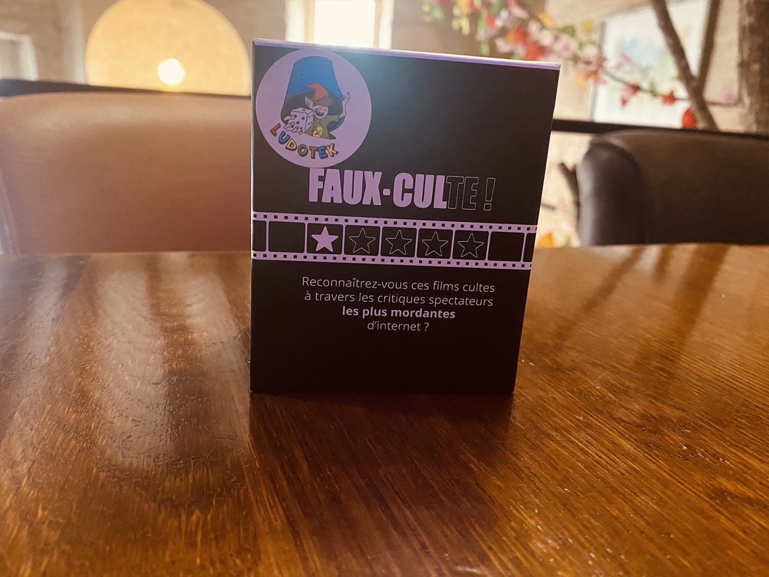⏱️ 30 min 👶 14 ans et + 👫 2 à 10 joueurs Faux-Culte est un jeu d’ambiance, dans lequel chacun lit un commentaire sur un film célèbre, tandis que les autres doivent trouver le titre du film qui est critiqué. Merci à moment ludique pour ses vidéos explicatives !
