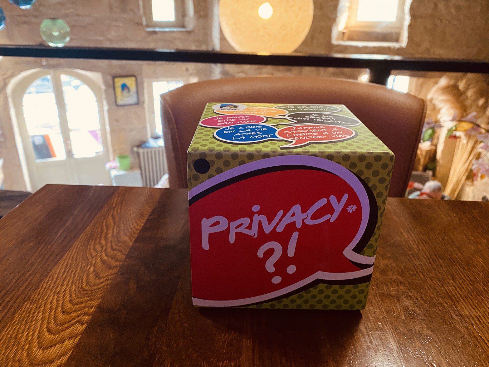 ⏱️ 30-60 min 👶 16 ans et + 👫 3 à 8 joueurs Privacy est un jeu de plus de 400 questions intimes, polémiques, amusantes ou salées qui appellent à répondre par Oui ou Non. Les votes étant anonymes, vous pouvez tout avouer : personne ne connaîtra votre réponse… Puis, vous parierez sur le nombreLire la suite « Privacy »