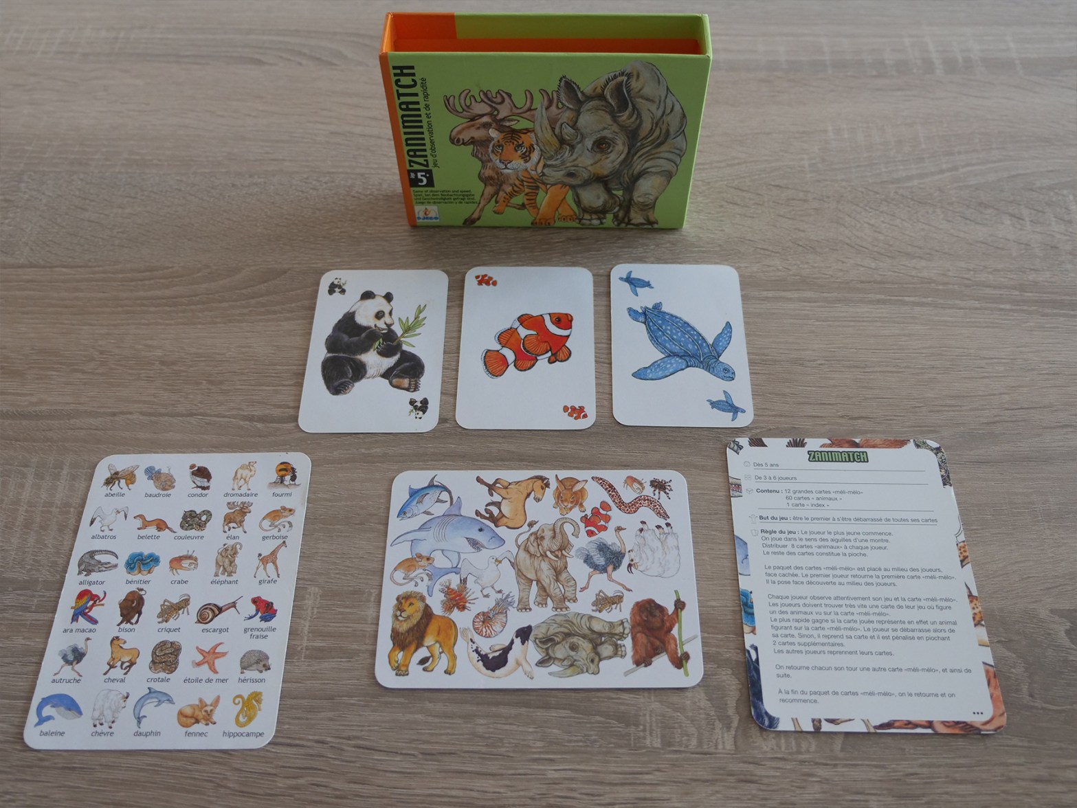 ⏱️ 30 min 👶 4 ans et + 👫 2 à 6 joueurs Zanimatch est un jeu d’observation et rapidité pour des parties endiablées qui nécessitent un oeil de lynx et un esprit vif. Le premier qui trouve sur la grande carte « Méli-mélo » un élément de son jeu, abat sa carte vite, vite ! Un jeu de carteLire la suite « Zanimatch »