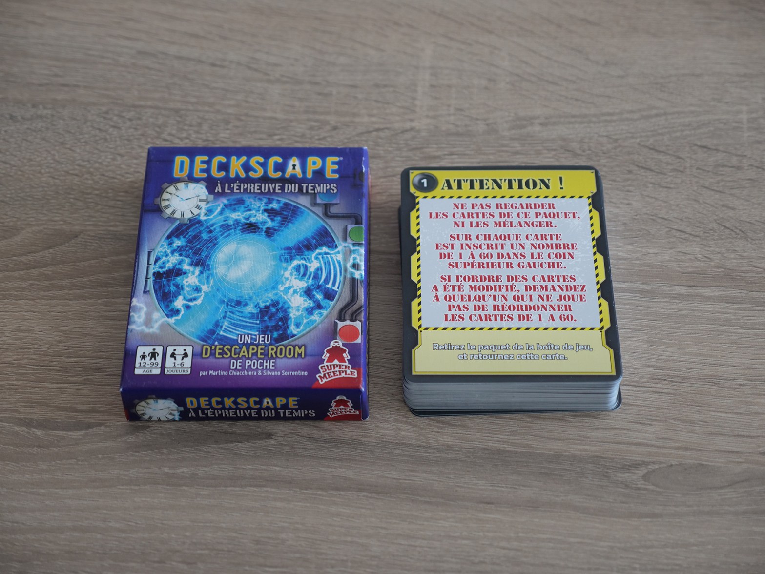 ⏱️ 60 min 👶12 ans et + 👫 1 à 6 joueurs Deckscape est un jeu d’escape game de salon. Vos amis et vous êtes piégés dans le laboratoire du Docteur Thyme. Tentez de résoudre les énigmes et utilisez astucieusement les outils à disposition pour sortir de la pièce. ❷ Idéal pour deux joueurs CautionLire la suite « Deckscape – A l’épreuve du temps »