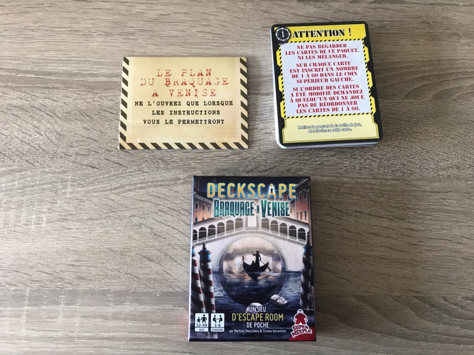 ⏱️ 60 min 👶 12 ans et + 👫 1 à 6 joueurs Deckscape est un jeu d’escape game de salon. Incarnez un groupe de cambrioleurs et tentez de vous introduire dans le plus ancien casino du monde… mais attention le temps est compté ! ❷ Idéal pour deux joueurs Caution : 10€