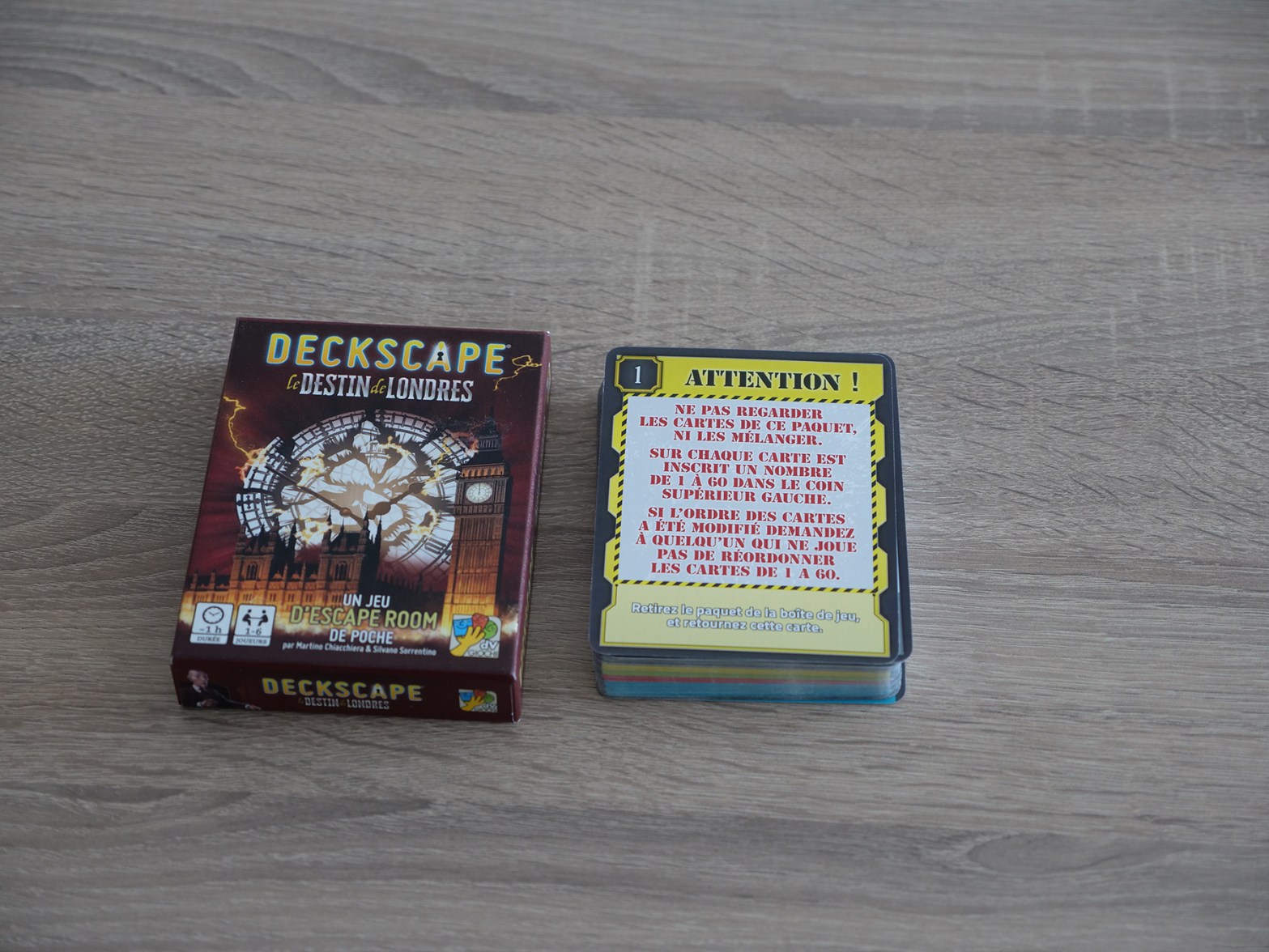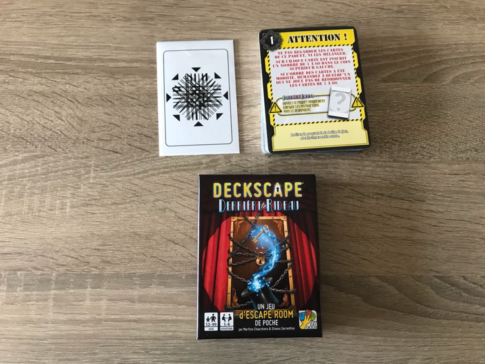 ⏱️ 60 min 👶12 ans et + 👫 1 à 6 joueurs Deckscape est un jeu d’escape game de salon. Rendez-vous à un spectacle de magie du célèbre Lance Oldman. Mais retenez-bien que lorsqu’on se frotte à la magie, il faut s’attendre à tout… ❷ Idéal pour deux joueurs Caution : 10€