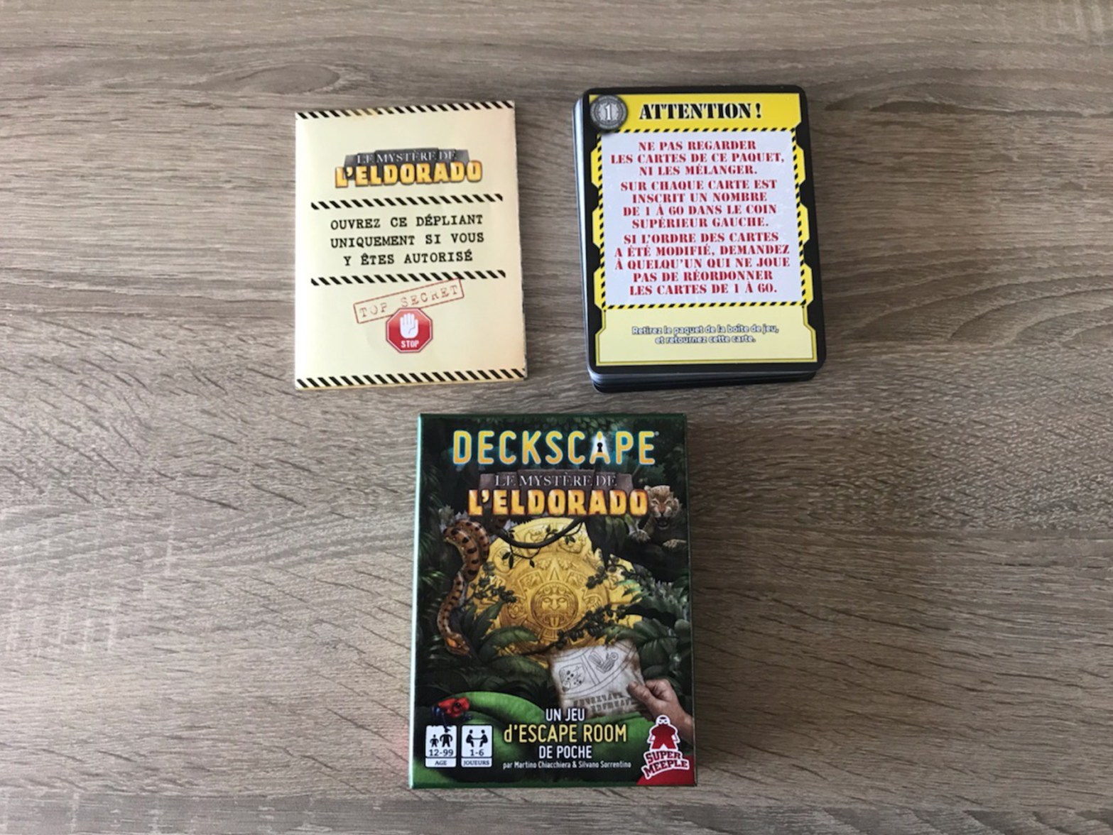 ⏱️ 60 min 👶 12 ans et + 👫 1 à 6 joueurs Deckscape est un jeu d’escape game de salon. Incarnez un groupe d’explorateurs et partez à la recherche des trésors de l’Eldorado… mais attention le temps est compté ! ❷ Idéal pour deux joueurs Caution : 10€