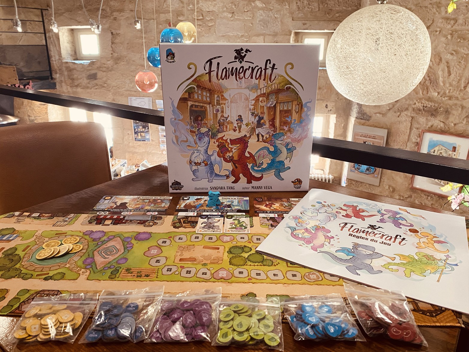 ⏱️ 60-120 min 👶 14 ans et + 👫 1 à 5 joueurs Dans Flamecraft, les joueurs jouent le rôle des gardiens de flammes, rassemblant des objets, plaçant des dragons et lançant des enchantements pour améliorer les boutiques de la ville. Votre réputation grandira au fur et à mesure que vous aiderez les dragons etLire la suite « Flamecraft »