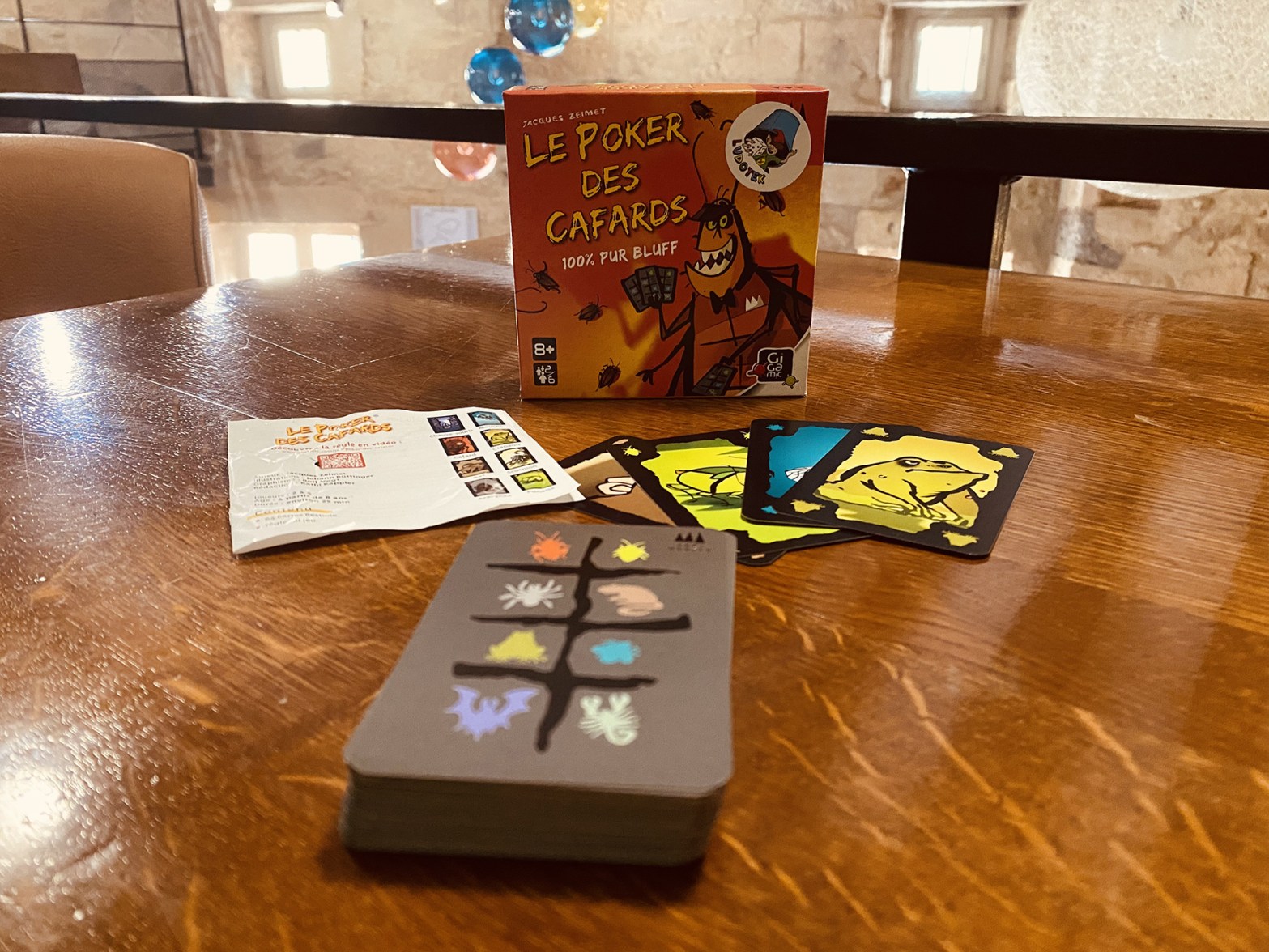 ⏱️ 30 min 👶 8 ans et + 👫 2 à 6 joueurs Le Poker des Cafards est un jeu de bluff, simple et rapide dans lequel les joueurs se refilent l’air de rien de drôles de petites bêtes. Les cartes représentent différentes sortes de bestioles très sympathiques (chauve-souris, cafard, crapaud, scorpion…). Un des joueurLire la suite « Le poker des cafards »