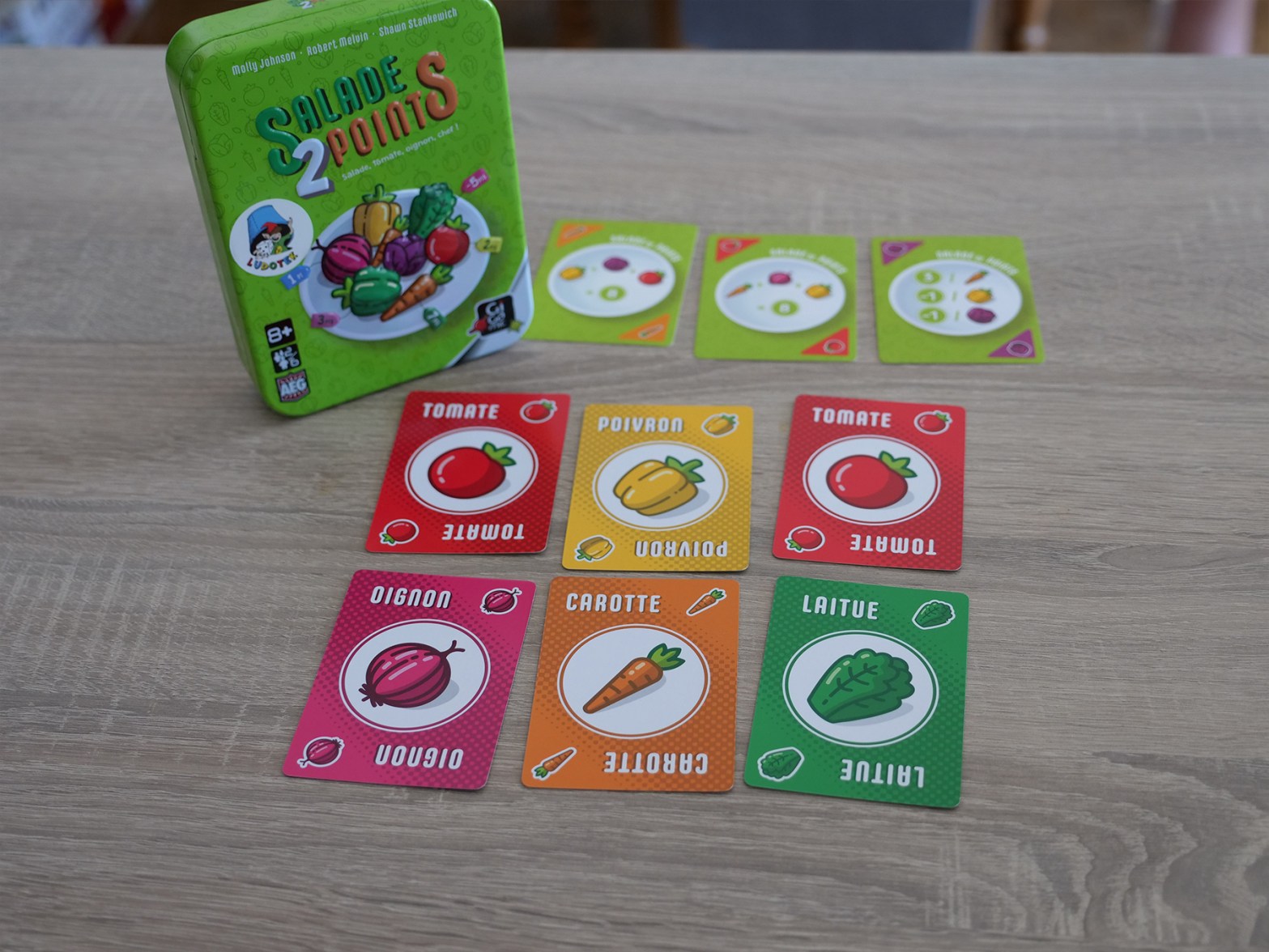 ⏱️ 30 min 👶 8 ans et + 👫 2 à 6 joueurs Salade 2 points est un jeu de collection de cartes pour toute la famille. Simple à apprendre et rapide à jouer, Salade 2 points est un jeu de collection de cartes qui plaira à tous. Avec plus de 100 façons de marquer des points,Lire la suite « Salade 2 points »