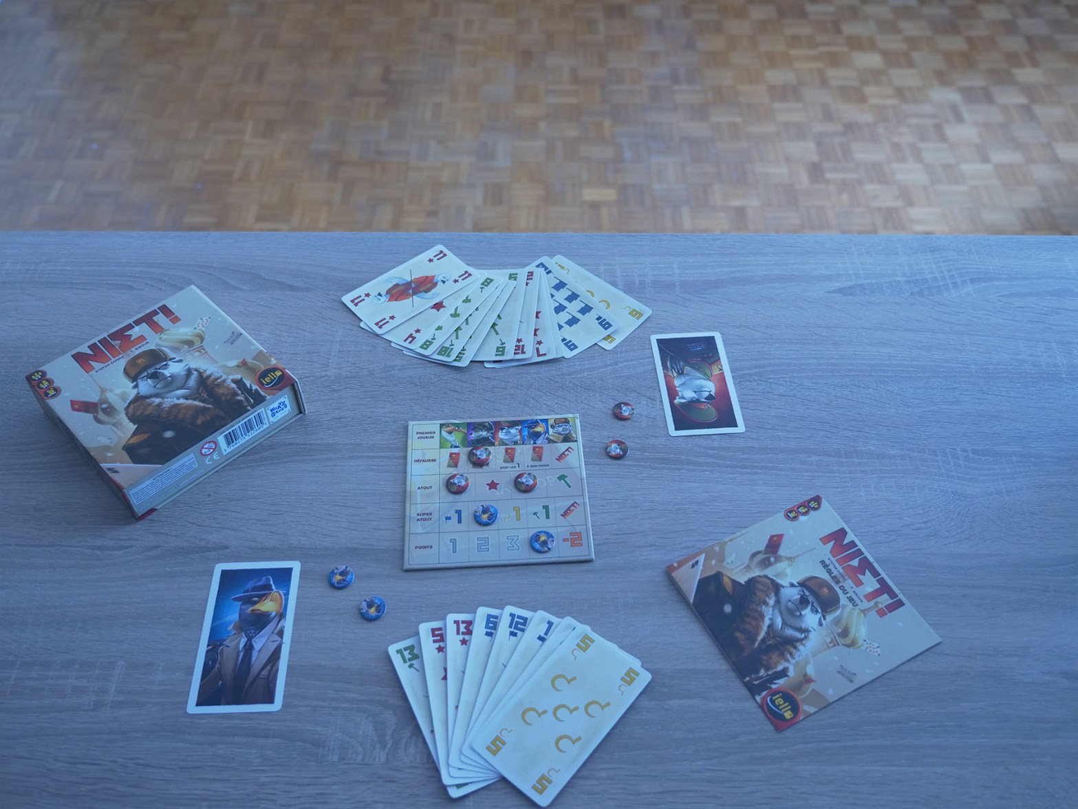 ⏱️ 30 min 👶 10 ans et + 👫 3 à 5 joueurs Niet! est un jeu de cartes dans lequel la composition des équipes, la couleur de l’atout et les points de vos plis changent à chaque tour en fonction de vos choix et de ceux des autres joueurs. Utilisez vos cartes au mieux,Lire la suite « Niet! »