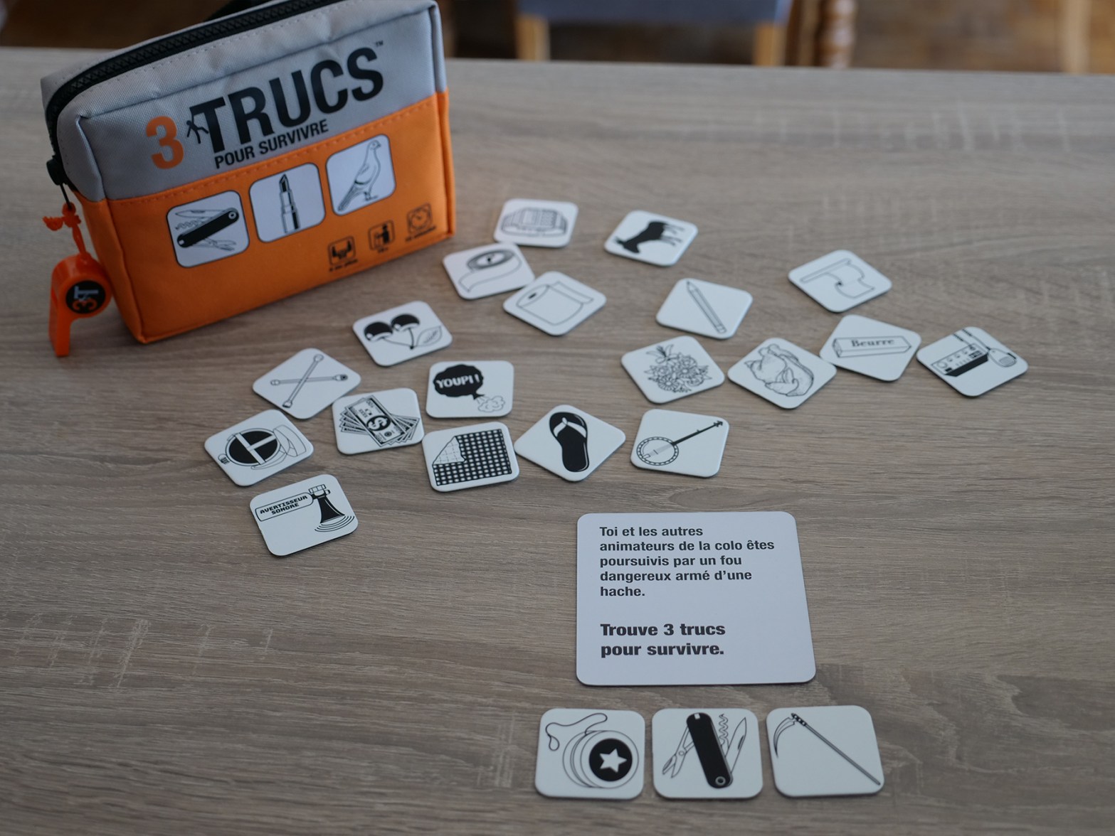 ⏱️ 30 min 👶 16 ans et + 👫 4 à 10 joueurs 3 Trucs pour Survivre vous entraîne à faire face aux accidents de la vie : être enterré vivant, se faire enlever par des clowns, ou encore se retrouver la main collée au visage par de la super glu. Tirez une carte, lisez votreLire la suite « 3 trucs pour survivre »