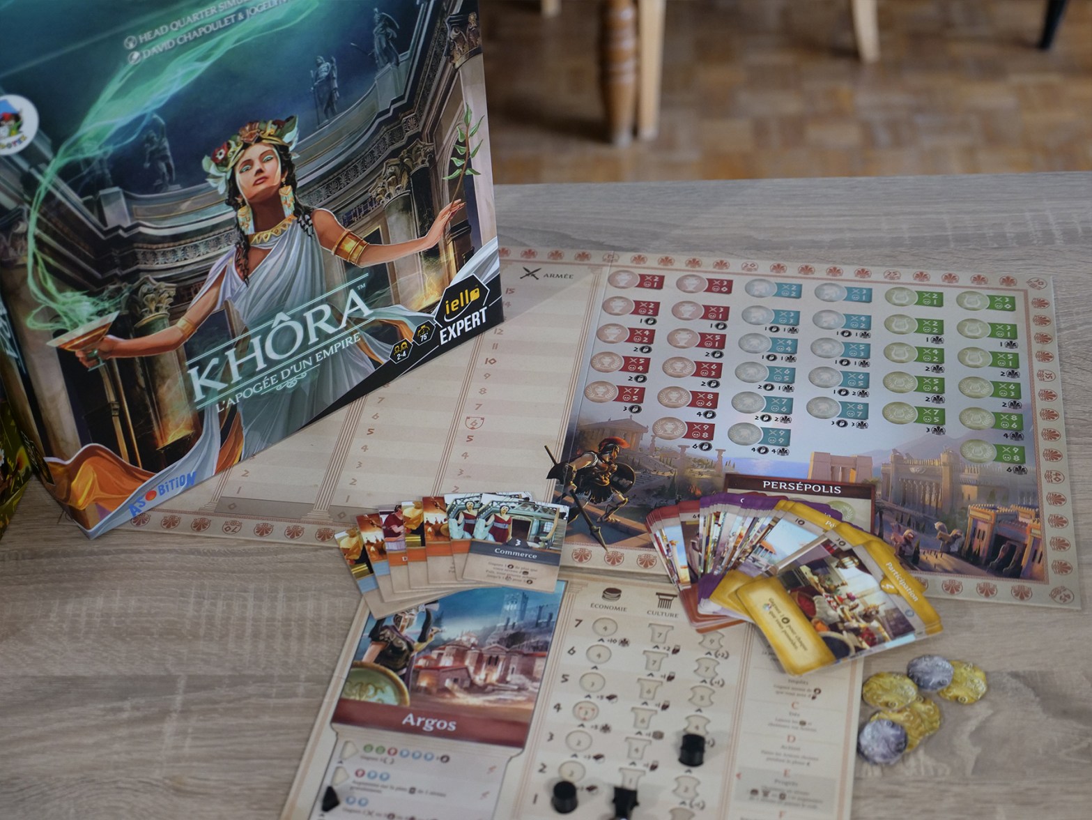 ⏱️ 60-120 min 👶 14 ans et + 👫 2 à 4 joueurs Dans Khôra, chaque joueur est à la tête d’une resplendissante cité-État de la Grèce antique.Dans la Grèce antique, les cités-États rivalisent de richesse et de puissance. À vous de mener votre cité à la gloire en exploitant ses atouts ! Politique, économie,Lire la suite « Khôra »