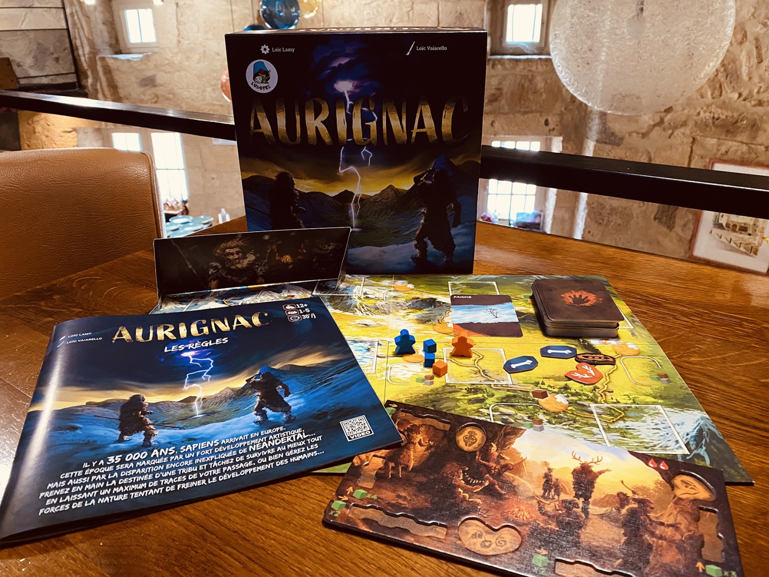 ⏱️ 60-120 min 👶 12 ans et + 👫 1 à 5 joueurs Aurignac est un jeu asymétrique, dans lequel vous dirigez un clan de Néandertaliens ou d’Homo-Sapiens. Une mécanique de deck building pour les Homo-Sapiens, de placement d’ouvriers pour les Néandertaliens et de gestion de main pour Mère-Nature. Merci à Ludovox pour leurs vidéosLire la suite « Aurignac »