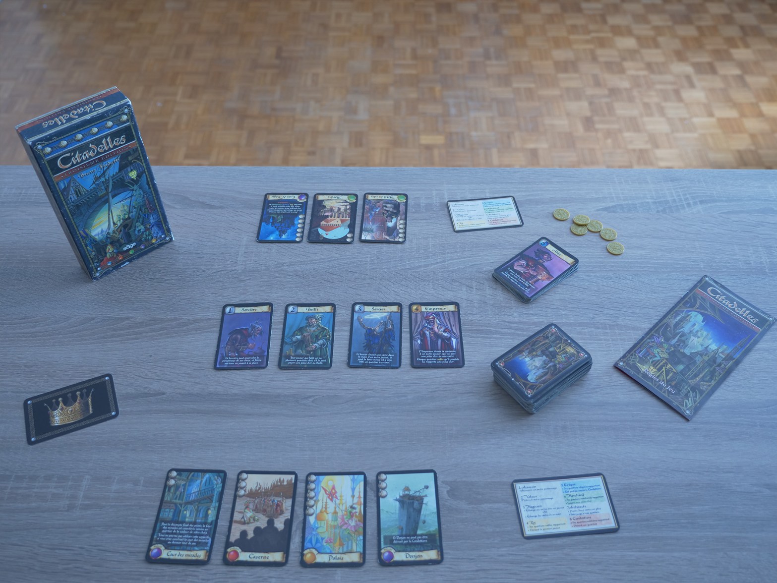 ⏱️ 30-60 min 👶 10 ans et + 👫 2 à 7 joueurs Incarnez un personnage et bâtissez la plus belle des cités dans Citadelles. Dans ce classique du jeu de société, usez de stratégie, de bluff, de diplomatie et gérez efficacement vos pièces d’or. Utilisez les pouvoirs des personnages pour construire, protéger ou encoreLire la suite « Citadelles »
