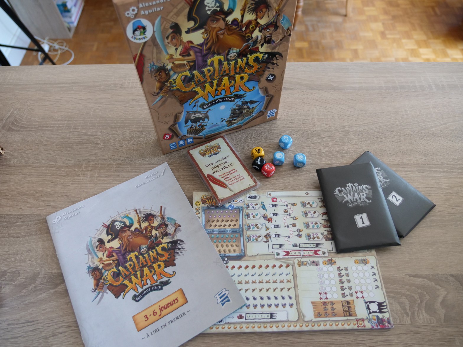 ⏱️ 30 min 👶 8 ans et + 👫 2 à 5 joueurs Dans Mille sabords, glissez-vous dans la peau d’un vieux loup de mer et organisez des parties de dés endiablées ! A l’aide des déroutantes cartes Pirate, défiez la chance et vos adversaires pour réaliser des combinaisons de dés et marquer un maximumLire la suite « Mille sabords »