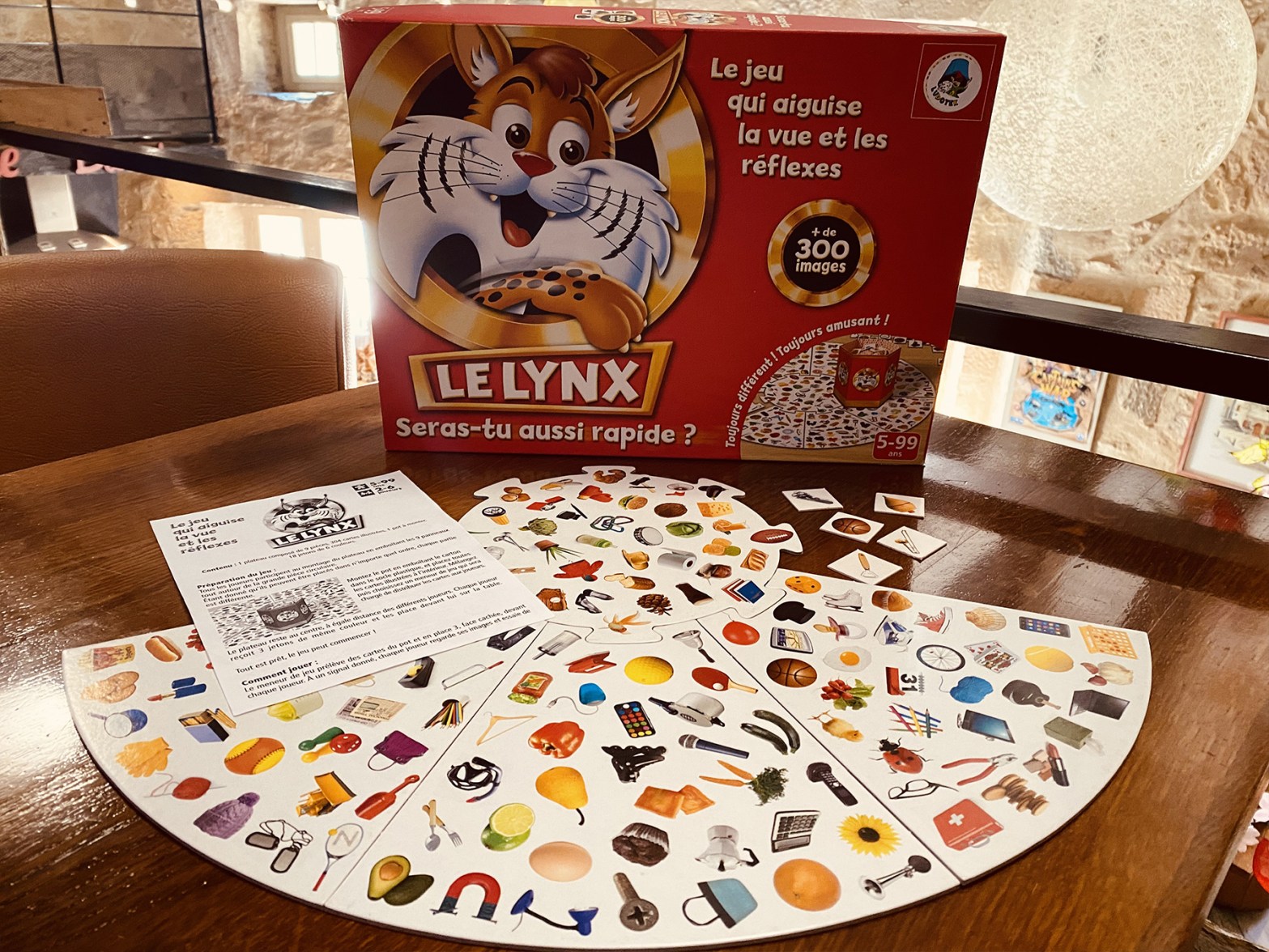 ⏱️ 30 min 👶 8 ans et + 👫 2 à 6 joueurs Le Lynx est un jeu d’action et de rapidité pour ceux qui ont des réflexes et des yeux de… lynx. Soyez le plus rapide à trouver des objets dissimulés sur le plateau.