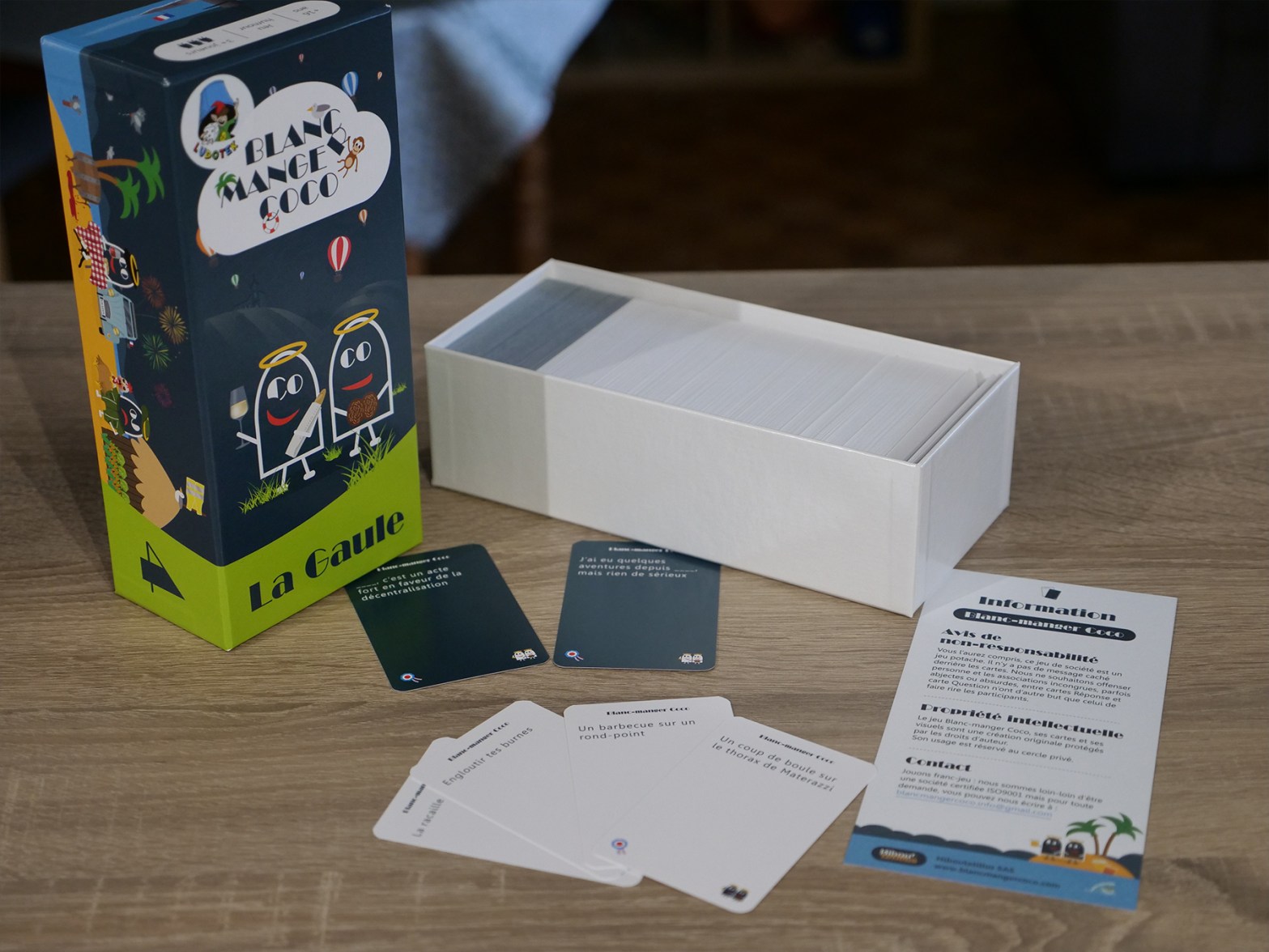 ⏱️ 30-60 min 👶 16 ans et + 👫 3 à 12 joueurs Le jeu consiste à compléter des phrases à trou avec des cartes réponses et d’amuser le Question Master (le maître du jeu qui lit la phrase à trou). Irrévérencieux, naïf, incohérent ou mielleux : à vous de vous adapter à votre auditoire.Lire la suite « Blanc manger coco – La Gaule »