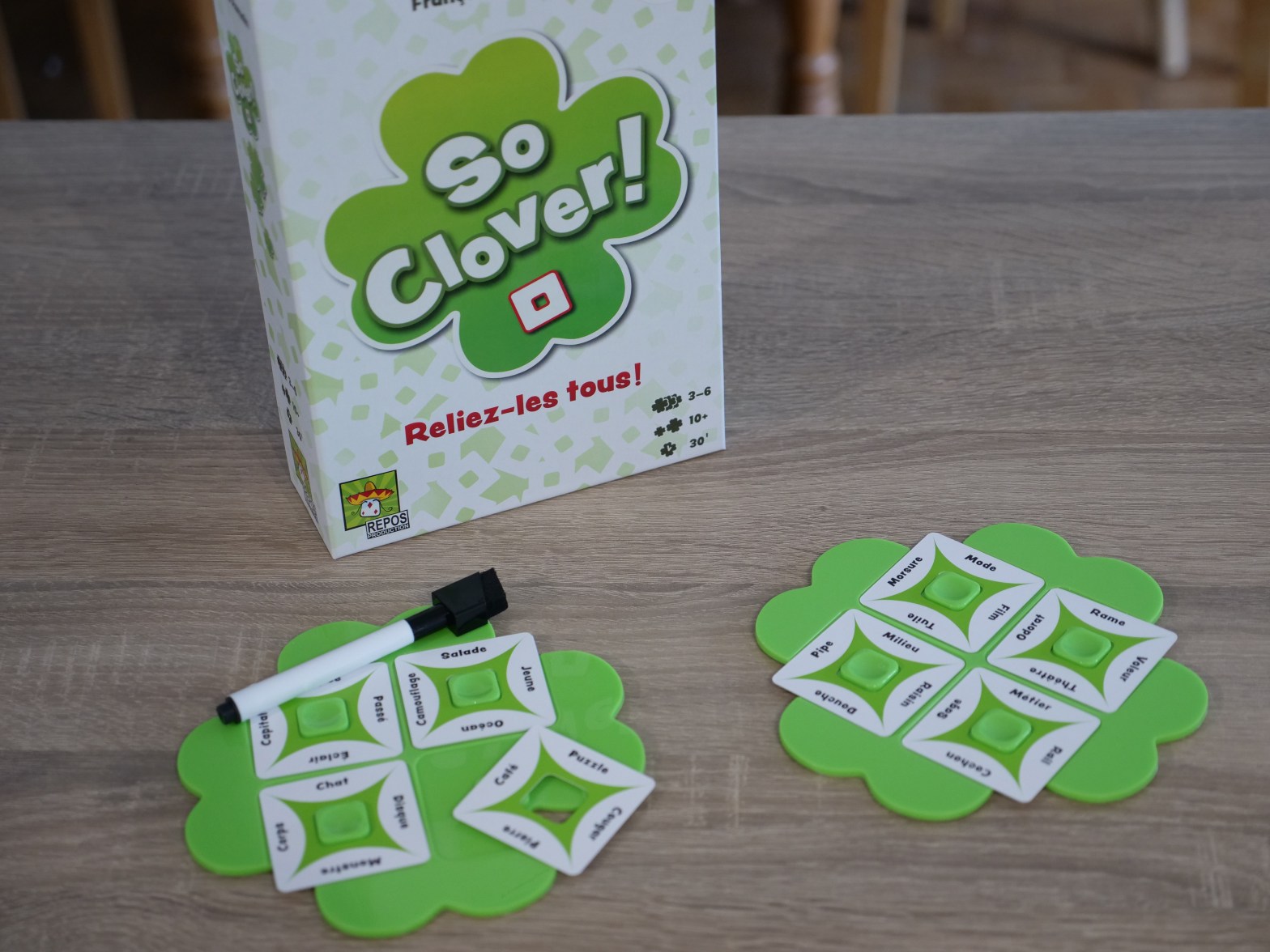 ⏱️ 30 min 👶 10 ans et + 👫 3 à 6 joueurs Obtenez des mots-clés et écrivez secrètement leurs caractéristiques communes sur votre tableau So Clover! : ce sont vos indices. Ensuite, travaillez ensemble pour essayer de trouver les mots-clés de chaque joueur. Un jeu qui peut vite devenir addictif ! À la finLire la suite « So Clover! »