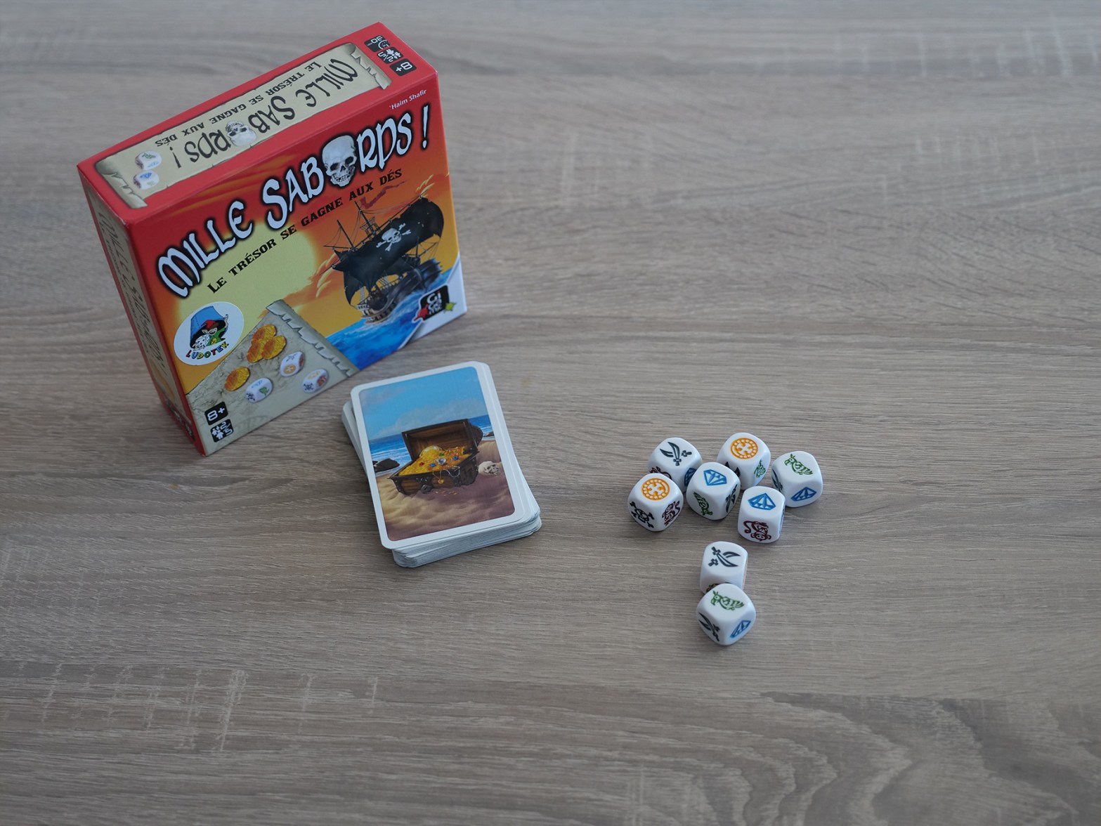 ⏱️ 30 min 👶 8 ans et + 👫 2 à 5 joueurs Dans Mille sabords, glissez-vous dans la peau d’un vieux loup de mer et organisez des parties de dés endiablées ! A l’aide des déroutantes cartes Pirate, défiez la chance et vos adversaires pour réaliser des combinaisons de dés et marquer un maximumLire la suite « Mille sabords »